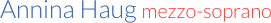 Née en Suisse, Annina Haug obtient d’abord un diplôme d’enseignement du violoncelle au Conservatoire neuchâtelois et depuis 2005 elle développe en parallèle sa passion pour le chant. Elle se forme à la « Royal Academy of Music » de Londres où elle obtient son Postgraduate Diploma of Performance en 2008 auprès d'Alison Pearce, ensuite à la « Hochschule Musik Luzern » et obtient en 2010 un Master of Performance avec distinctions du jury et se perfectionne au « Schweizer Opernstudio » auprès de Prof. Liliane Zürcher.